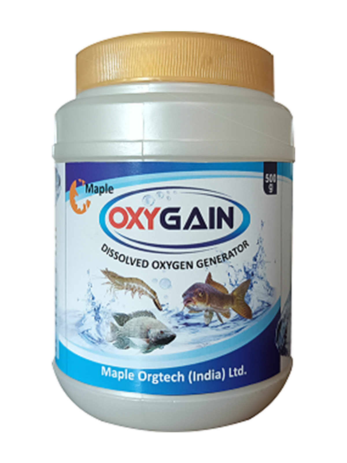 OXYGAIN is a unique chemical composition which generates dissolved oxygen and adsorbs noxious gases at the pond bottom. The sustained release formulation ensures a steady supply of fluctuating oxygen level and thus providing healthy growth of prawns, shrimp and fish. It also helps to grow aerobic bacteria which decomposes the harmful organic load in pond.